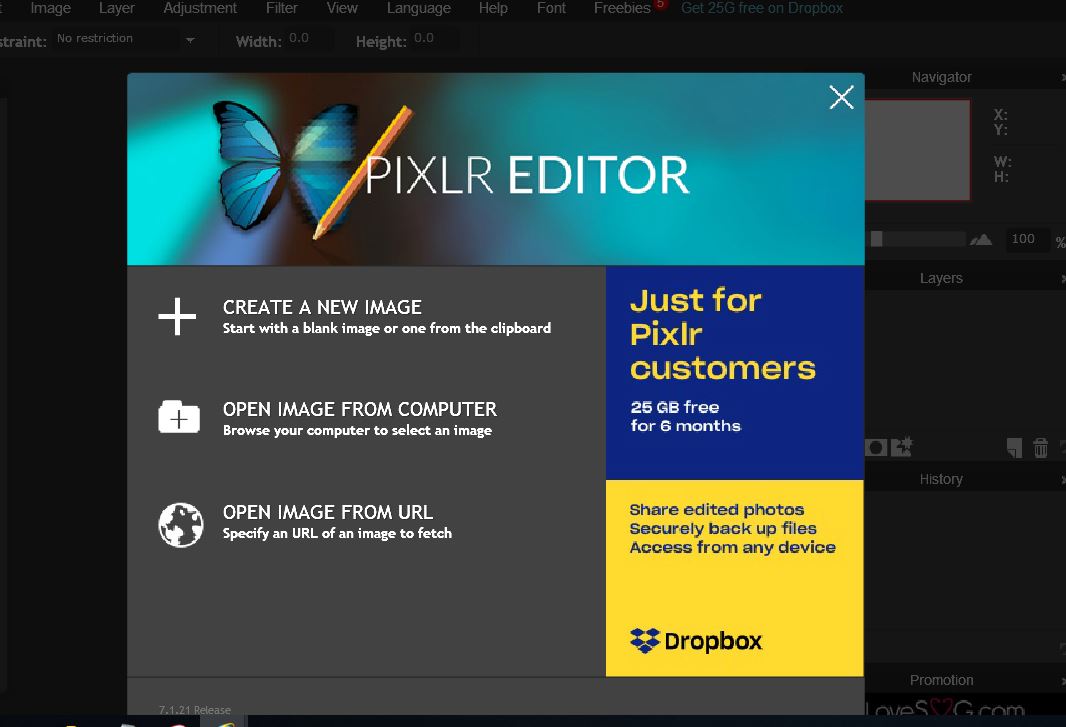 프로그램을 다운로드할 필요 없이 브라우저 창에 픽슬러(pixlr) 주소만 입력해서 접속하면 곧바로 사용 가능한 무료 인터넷 포토샵 픽슬러 에디터!