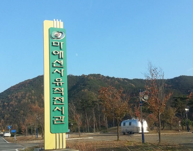 마애솔숲공원 도로 앞에는 마애선사유적전시관이라는 큰 입간판이 세워져 있다.