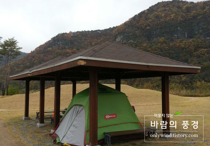 5년전 그날 비가 내려서 어쩔 수 없이 이런곳에 텐트를 쳐야만 했었다. 돌이켜보면 이런 곳에 텐트를 쳐야 했을까 싶다. 캠핑장으로 오픈된 곳이라 그냥 아무런 생각 없이 설치한 것 같기도 하지만 오픈된 시설에다 관리자분께서 지나가면서 웃음 띤 얼굴로 인사까지 건네는 상황이라 그때 상황엔 별 무리는 없었다.