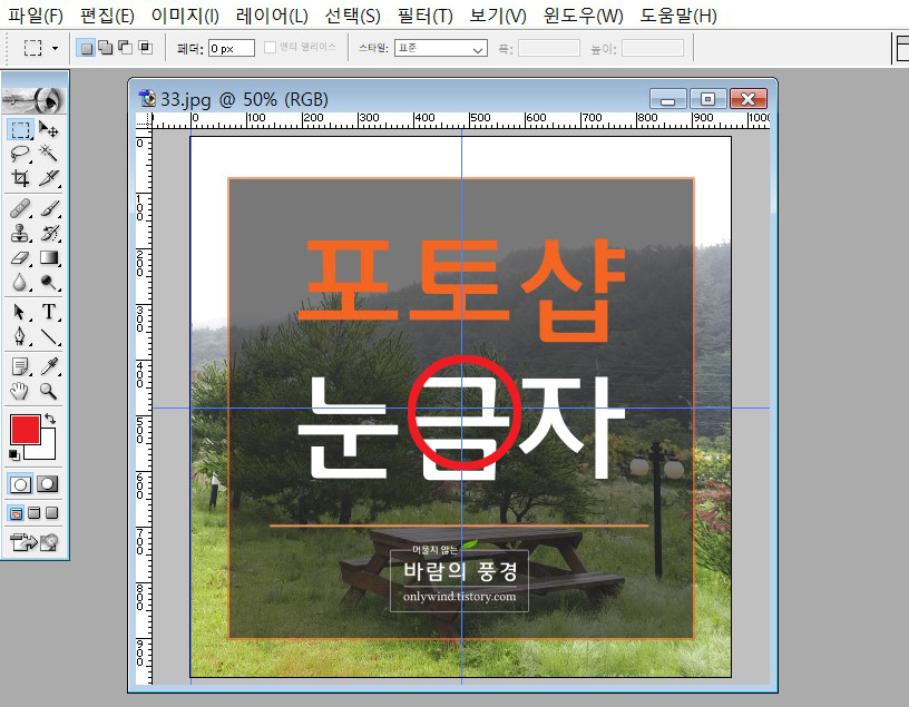이제 포토샵 눈금자에서 안내선을 꺼내어 이미지에 보이도록 해보자.