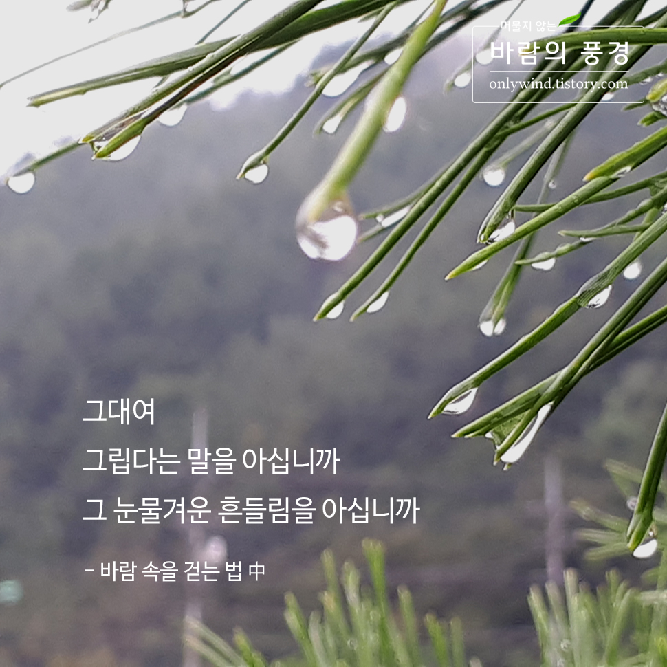 이정하 시인의 작품으로 제작된 카톡 메인 프로필 이미지 시용 시 바람의 풍경 로고는 훼손하지 말고 사용해주시기 바랍니다.