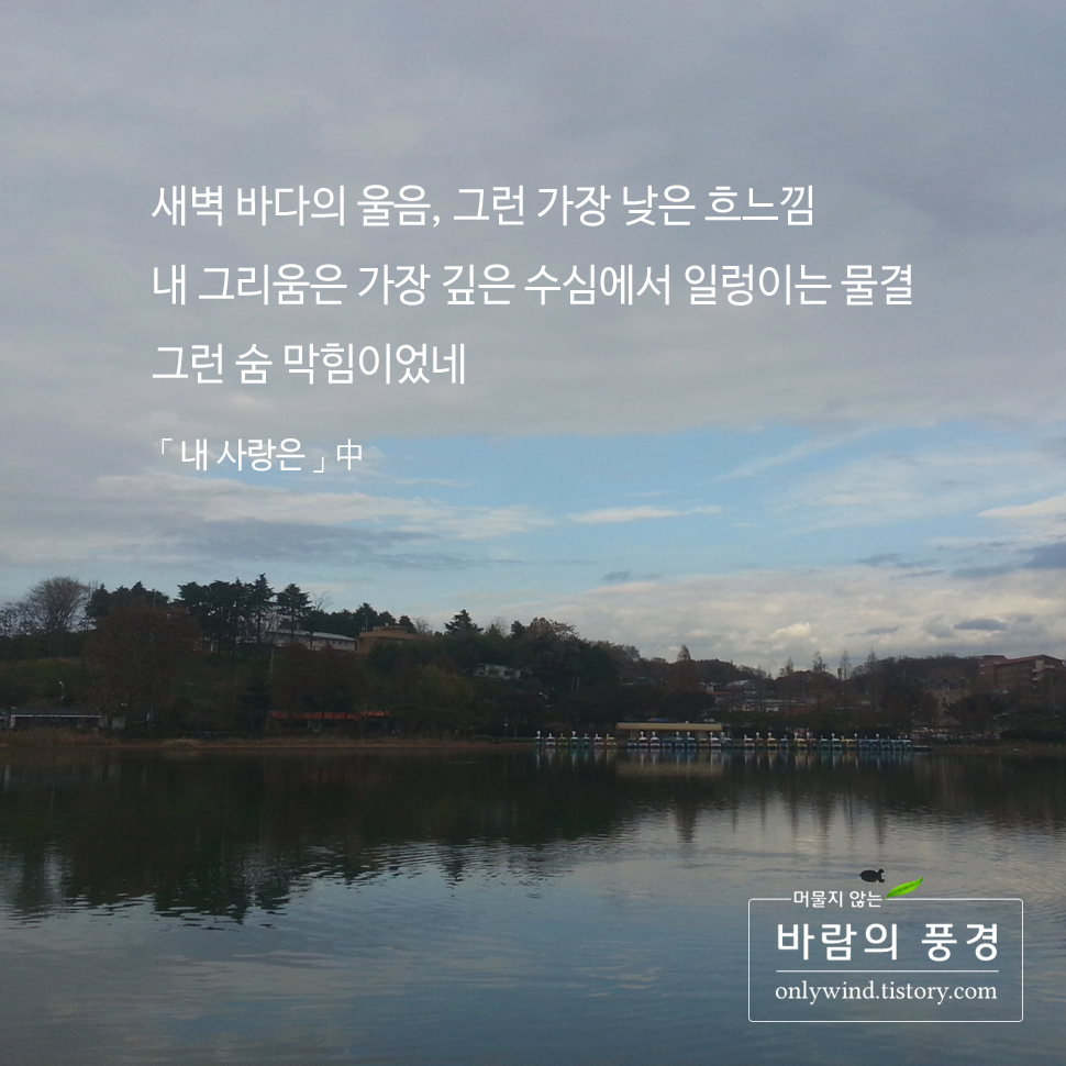 ▷ 새벽 바다의 울음, 그런 가장 낮은 흐느낌, 내 그리움은 가장 깊은 수심에서 일렁이는 물결