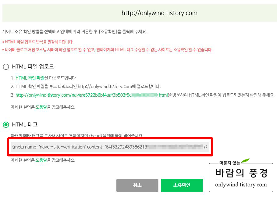 소유 확인을 아주 쉽게 하는 방식이 티스토리에서 새롭게 개발 되었기 때문이다.