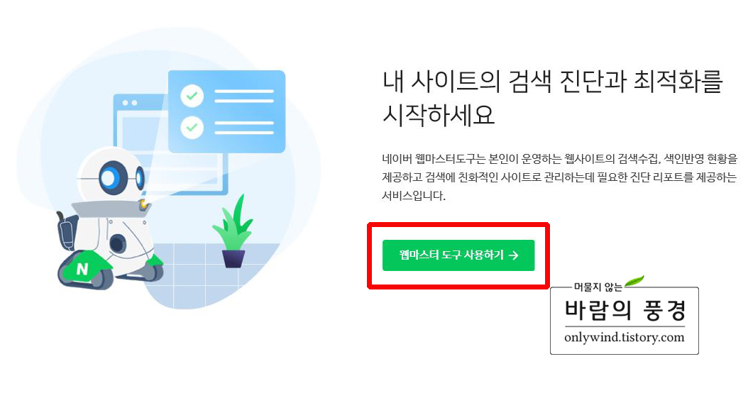 하단 녹색버튼 '웹마스터도구 사용하기' 클릭~