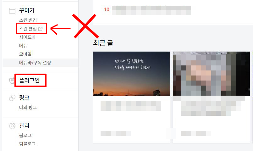 스킨편집이 아닌, "플러그인" 경로를 타고 들어간다.